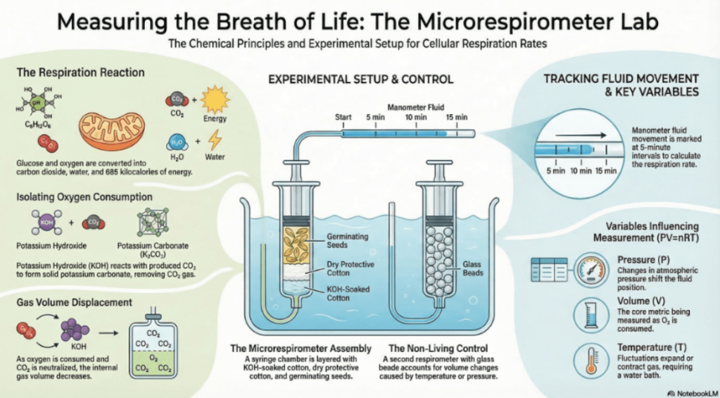 In this second example (below) I uploaded the AP Biology Student Lab 6: Cellular Respiration and asked for an infographic. Similarly, I can imagine myriad ways of engaging students with the ideas around this lab (pre / post / review prior to exam) using this infographic.